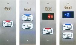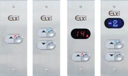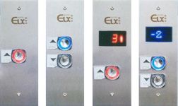 As botoeiras de cabina e pavimento são confeccionadas em chapa de aço inox com botões antivandalismo com várias configurações e formatos que são oferecidos através de catálogos e mostruários.